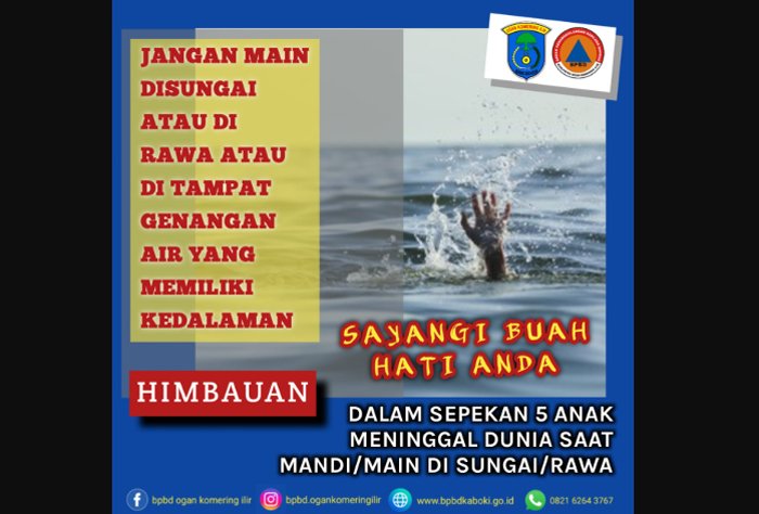 Imbauan ini disampaikan menyusul kejadian tragis yang terjadi dalam kurun waktu 6 hari (6–12 Maret 2025), dimana 5 anak di Kabupaten OKI dilaporkan tewas tenggelam.