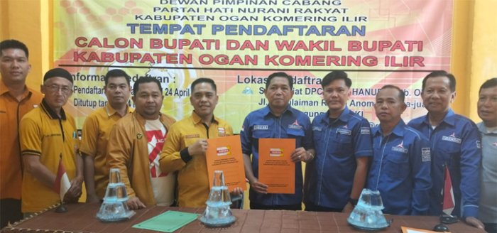 Seakan telah diatur sedemikian rupa, pada saat mengambil formulir pendaftaran penjaringan bakal calon bupati dan wakil bupati di kantor Sekretariat DPD PAN OKI, Tim DPC Partai Demokrat OKI serta DPC Partai Hanura OKI kompak datang bersamaan untuk mengambil formulir pendaftaran, Jumat (3/5/2024).