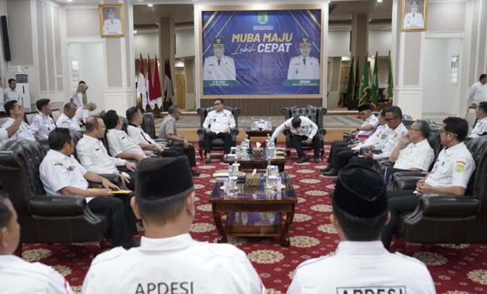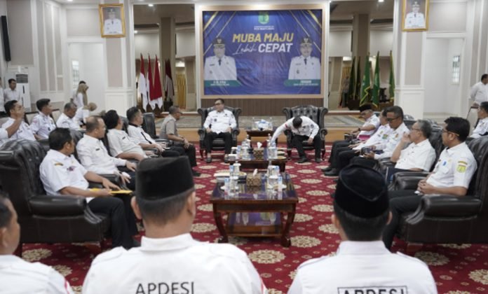 MUSI BANYUASIN, BERITAANDA – Suasana hangat dan penuh kekeluargaan terasa di Guest House Griya Bumi Serasan Sekate, Rabu (2/7/2025), saat puluhan kepala desa yang tergabung dalam Pengurus Dewan Pimpinan Cabang Asosiasi Pemerintah Desa Seluruh Indonesia (DPC APDESI) Kabupaten Musi Banyuasin (Muba) masa bakti 2025–2030 melakukan audiensi dengan Bupati Muba, HM. Toha.