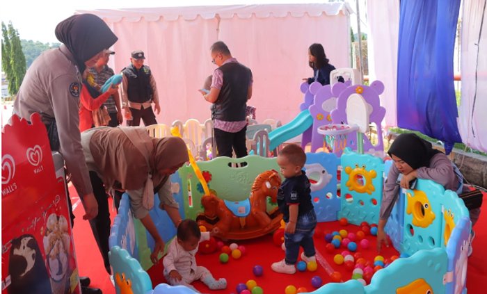 BANDAR LAMPUNG, BERITAANDA – Dalam rangka memberikan kenyamanan bagi para pemudik yang hendak menyeberang ke Pulau Jawa, Kepolisian Resor Kota Bandar Lampung menyediakan sejumlah fasilitas hiburan di lokasi para pemudik menunggu di Pelabuhan Panjang Bandar Lampung.