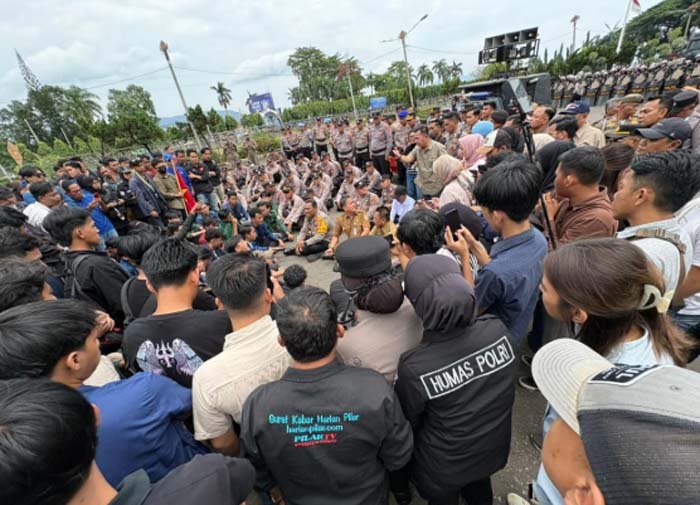 Dalam aksi tersebut, massa mahasiswa menyampaikan berbagai tuntutan melalui orasi terbuka di depan gedung DPRD dengan pengawalan aparat kepolisian.