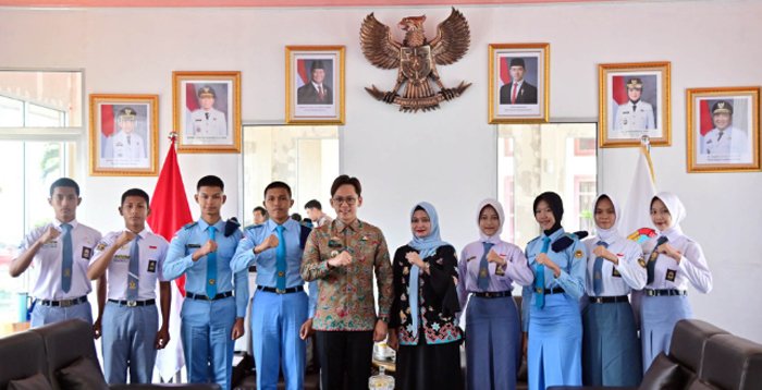 LAMPUNG SELATAN, BERITAANDA – Bupati Lampung Selatan, Radityo Egi Pratama (Egi), menerima audiensi para calon Pasukan Pengibar Bendera Pusaka (Paskibraka) yang akan mengikuti seleksi tingkat Provinsi Lampung, di rumah dinas bupati, Jumat (2/5/2025).