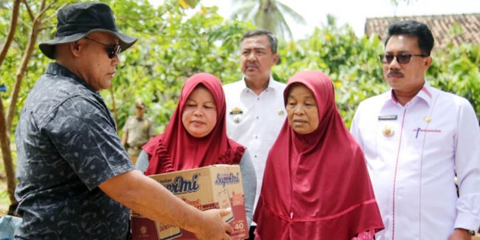 Selain memberikan bantuan uang tunai, Bupati Lampung Selatan juga memberikan bantuan berupa beras dan makanan cepat saji untuk keluarga yang terkena musibah.