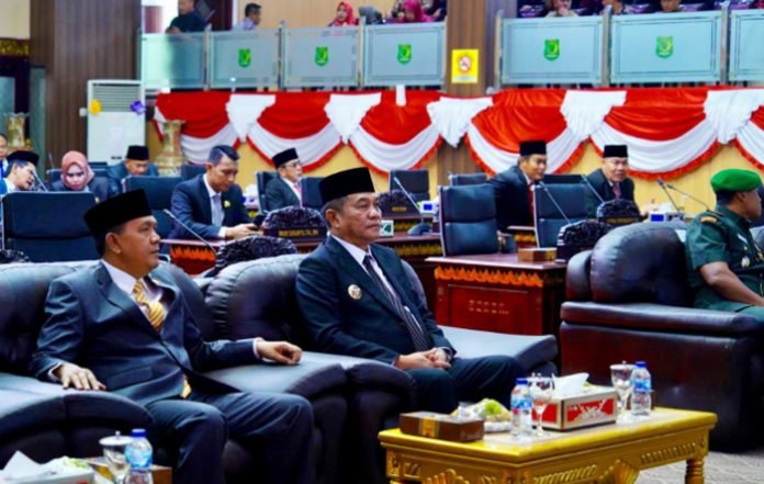 MUSI BANYUASIN, BERITAANDA – Menyambut Hari Ulang Tahun (HUT) ke-80 Republik Indonesia, Bupati Musi Banyuasin (Muba) HM. Toha Tohet SH menghadiri rapat paripurna istimewa DPRD Kabupaten Muba untuk mendengarkan pidato kenegaraan Presiden Republik Indonesia Prabowo Subianto, Jumat (15/8/2025), di Ruang Rapat DPRD Muba.