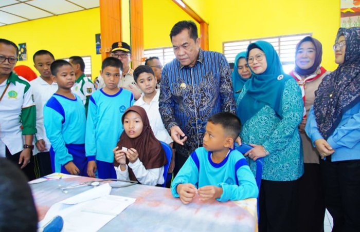 MUSI BANYUASIN, BERITAANDA – Bupati Musi Banyuasin (Muba) HM. Toha Tohet SH bersama Ketua TP PKK Muba Hj. Patimah Toha meninjau pelaksanaan pemeriksaan kesehatan gratis (PKG) di SMP Negeri 6 Sekayu dan SMP Negeri 1 Sekayu, Kamis (14/8/2025).