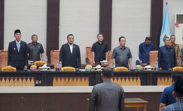 Rapat paripurna berlangsung di ruang rapat DPRD OKI, dipimpin Ketua DPRD OKI Farid Hadi Sasongko, serta dihadiri unsur Forkopimda dan anggota DPRD OKI.