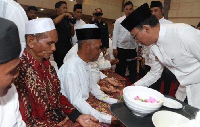 TAPANULI SELATAN, BERITAANDA – Bupati Tapanuli Selatan H. Gus Irawan Pasaribu melakukan prosesi tepung tawar terhadap 174 calon jamaah haji (calhaj) Kloter 20 dari Kuala Namu International Airport (KNIA) Embarkasi Medan.