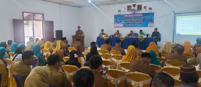 Acara yang dimulai sekitar pukul 09.00 WIB di Aula Kantor Camat Kayuagung ini, dihadiri oleh pihak Bappeda Kabupaten OKI, anggota DPRD OKI, Kapolsek, Danramil, lurah, para kepala desa, serta unsur terkait lainnya. Kegiatan tersebut dibuka langsung oleh Camat Kayuagung, Saleh Nawawi S.Sos.
