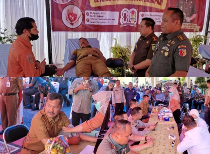KERINCI, BERITAANDA – Bupati Kerinci Monadi menghadiri kegiatan donor darah yang digelar Kejaksaan Negeri (Kejari) Sungai Penuh dalam rangka memperingati Hari Lahir Kejaksaan Republik Indonesia ke-80 tahun 2025. Acara berlangsung di halaman Kantor Kejari Sungai Penuh, Selasa (26/8/2025).