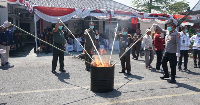 Barang bukti yang dimusnahkan mencakup narkotika jenis sabu, ekstasi, ganja, senjata tajam, serta berbagai barang hasil kejahatan lainnya. Pemusnahan dilakukan dengan cara dibakar dan dihancurkan, sebagai wujud komitmen aparat penegak hukum dalam memberantas tindak pidana di wilayah Kabupaten OKI.