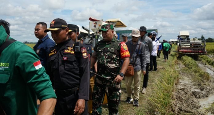 Komandan Kodim 0402/OKI Letkol Inf Yontri Bhakti SH MH bersama jajaran Forkopimda OKI turut mendampingi Forkopimda Sumatera Selatan dalam kegiatan panen raya yang berlangsung di lahan pertanian seluas kurang lebih 205 hektare tersebut.