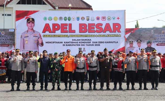 Apel besar ini dihadiri langsung oleh Kapolda Sumatera Selatan Irjen Pol. Dr. Sandi Nugroho SIK SH M.Hum, Bupati OKI H. Muchendi Mahzareki SE M.Si, Kapolres OKI AKBP Eko Rubianto SH SIK MH, Kajari OKI I Gede Widhartama SH, serta unsur Forkopimda dan berbagai elemen terkait lainnya.