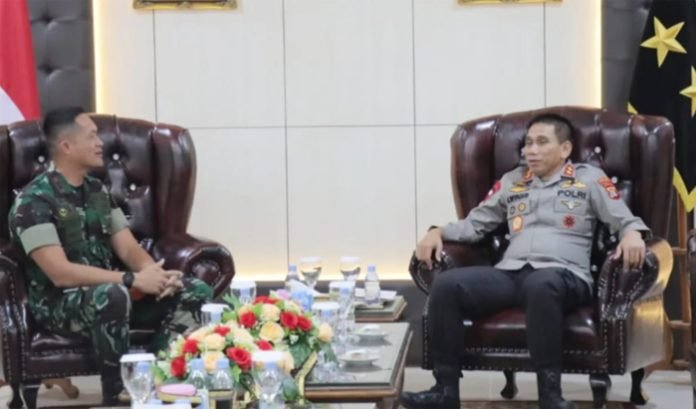 BANADR LAMPUNG, BERITAANDA – Komandan Pangkalan TNI AU Pangeran M. Bun Yamin (Danlanud BNY) Letkol Pas Yoseph M. Purba M.Avn.Mgt MMS pcsc melaksanakan kunjungan audiensi dan silaturahmi dengan Kepala Kepolisian Daerah Lampung Irjen. Pol. Dr. Akhmad Wiyagus SIK M.Si MM di Gedung Presisi Polda Lampung, Sukarame, Bandar Lampung, Senin (9/1/2023).