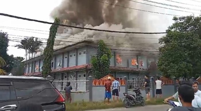 Tak tanggung-tanggung, kebakaran hebat tersebut menghanguskan 48 kamar asrama yang terletak tepat berdampingan dengan gedung sekolah.