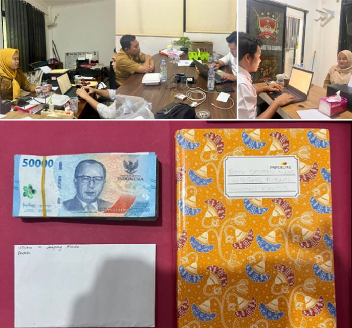 Dari hasil penggeledahan, penyidik menemukan uang tunai sebesar Rp5.000.000 di dalam tas milik tersangka. Selain itu, dari seorang staf berinisial ZR yang diduga berperan sebagai perantara, turut diamankan uang sebesar Rp500.000 yang disimpan dalam amplop.