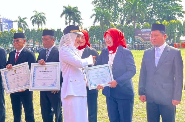 BANDAR LAMPUNG, BERITAANDA – Kepala Dinas Peternakan dan Kesehatan Hewan Provinsi Lampung, Ir. Lili Mawarti M.Si, menghadiri upacara peringatan hari jadi ke-62 Provinsi Lampung yang mengusung tema ‘Membangun Bersama Lampungku Maju’.