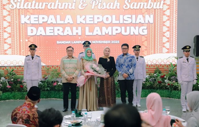 BANDAR LAMPUNG, BERITAANDA – Ketua DPRD Provinsi Lampung, Ahmad Giri Akbar, menghadiri acara silaturahmi dan pisah sambut Kapolda Lampung yang digelar di Mahan Agung, Kamis (6/11/2025) malam.