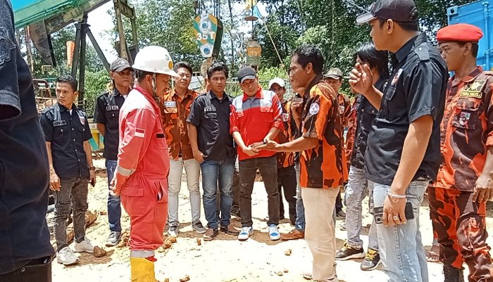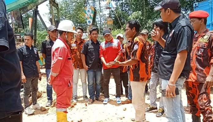 PALI, BERITAANDA – Puluhan massa yang tergabung dalam Pimpinan Anak Cabang (PAC) Pemuda Pancasila (PP) Kecamatan Talang Ubi Kabupaten PALI melakukan aksi damai di area pengeboran minyak PT General Buditekindo (GBT) sub kontraktor rig service PT Pertamina yang berada di Kecamatan Talang Ubi, Sabtu (30/3/2024).
