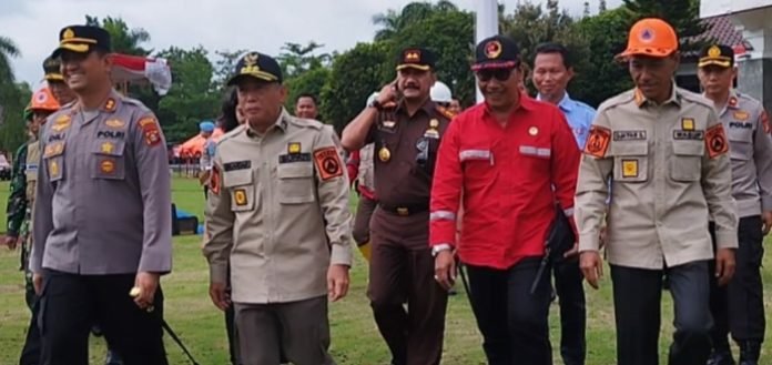 OKI, BERITAANDA – Bertempat di halaman kantor Pemkab OKI, digelar kegiatan upacara apel pasukan siaga karhutla, Kamis (26/1/2023) pagi.