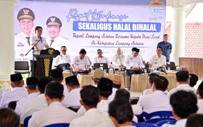 Ajakan tersebut disampaikan dalam rapat koordinasi dan acara halal bihalal bersama para kepala desa, lurah, dan camat se-Kabupaten Lampung Selatan yang digelar di Aula Sebuku, rumah dinas bupati pada Rabu (23/4/2025). Kegiatan ini juga dihadiri oleh Wakil Bupati M. Syaiful Anwar.