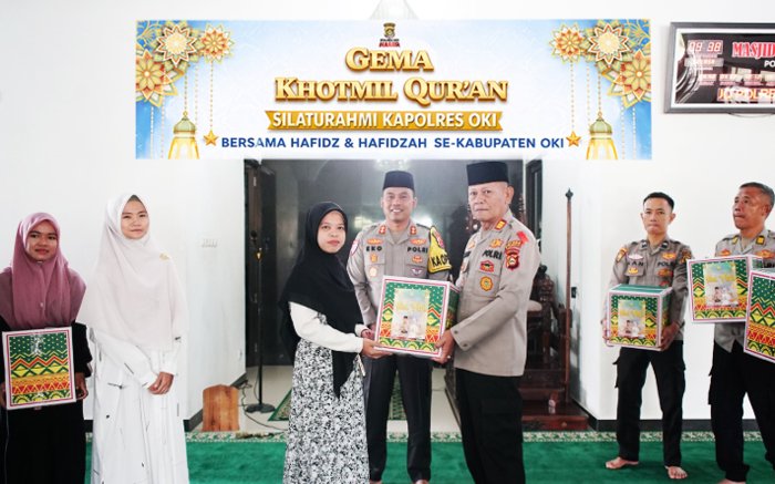 OGAN KOMERING ILIR, BERITAANDA – Dalam suasana penuh keberkahan, kegiatan Gema Khotmil Qur’an menjadi momentum istimewa yang mempertemukan nilai-nilai spiritual dengan semangat kebersamaan. Kegiatan ini tidak hanya menjadi ajang khataman Al-Qur’an, tetapi juga menjadi wadah silaturahmi antara Kapolres OKI dengan para hafiz dan hafizah di Kabupaten Ogan Komering Ilir (OKI), Selasa (17/3/2026).