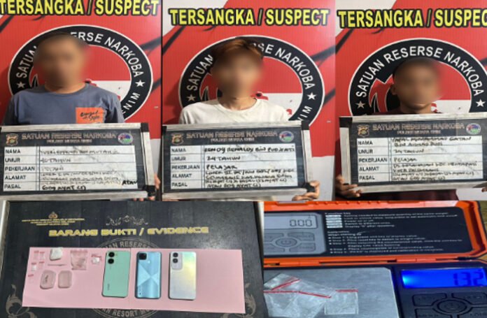 Dari operasi pertama, petugas mengamankan lima paket sabu dengan berat bruto 1,32 gram dari tiga tersangka. Turut disita barang bukti berupa pipet sekop, kotak plastik, bal plastik klip bening, plastik klip kosong, serta tiga unit telepon genggam yang diduga digunakan untuk komunikasi transaksi.