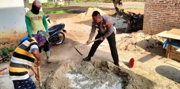 Di kediaman Bapak Sardi, Aipda Dahlian di sela-sela tugasnya sebagai anggota Satuan Lalu Lintas Polres Lamtim bersama masyarakat terlihat tengah kompak bergotong-royong. Aipda Dahlian tak segan membantu dalam hal apapun, termasuk dalam aktifitas berat.