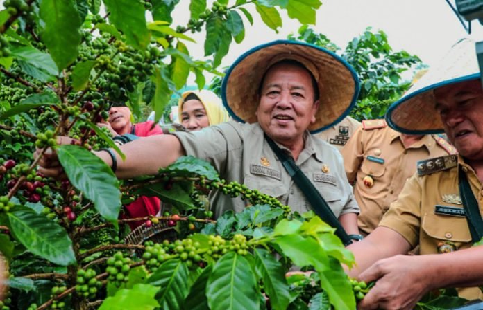BANDAR LAMPUNG, BERITAANDA – Gubernur Lampung Arinal Djunaidi melakukan panen kopi arabika sistem pagar dan temu lapang bersama petani kopi di Kecamatan Sekincau Kabupaten Lampung Barat, Selasa (30/1/2024).
