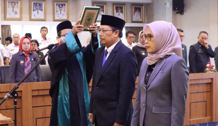 BANDAR LAMPUNG, BERITAANDA – Atas nama Gubernur Lampung, Sekretaris Daerah Provinsi (Sekdaprov) Marindo Kurniawan melantik dan mengambil sumpah/janji jabatan dua pejabat pimpinan tinggi pratama di lingkungan Pemerintah Provinsi Lampung, berlangsung di Ruang Rapat Utama, Rabu (6/8/2025).