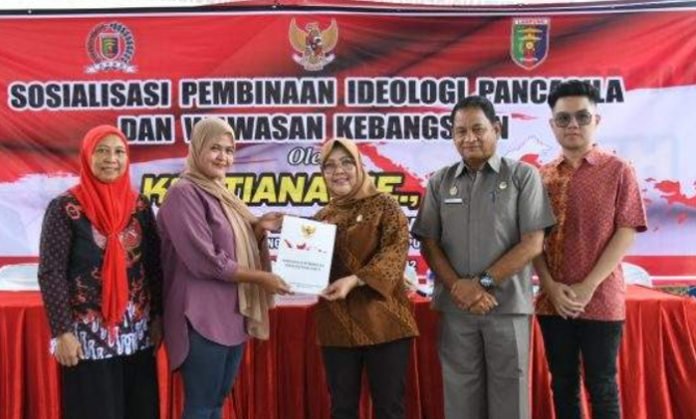BANDAR LAMPUNG, BERITAANDA – Bersama AKB Basri Dina selaku narasumber pada sosialisasi pembinaan ideologi Pancasila dan wawasan kebangsaan, anggota Dewan Perwakilan Rakyat Daerah (DPRD) Provinsi Lampung Kostiana SE MH menyampaikan ideologi Pancasila merupakan identitas bangsa. Dengan adanya ideologi tersebut bangsa Indonesia akan tetap kuat.