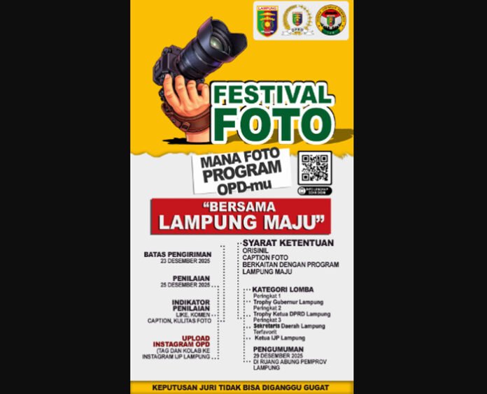Festival Foto ‘Bersama Lampung Maju’ menjadi salah satu langkah konkret IJP Lampung dalam mendukung publikasi pembangunan berkelanjutan serta memperkuat branding Provinsi Lampung sebagai daerah yang terus berinovasi, maju, dan berdaya saing. (*)