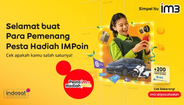 “Kami mengucapkan selamat kepada seluruh pemenang Pesta Hadiah IMPoin 2025 dan terima kasih yang sebesar-besarnya kepada seluruh pengguna IM3 atas kepercayaan yang terus diberikan kepada kami. Pesta Hadiah IMPoin bukan sekadar program undian, melainkan wujud apresiasi IM3 atas loyalitas pelanggan. Ke depan, kami berkomitmen untuk terus menghadirkan layanan terbaik melalui produk unggulan IM3 serta peningkatan Jaringan Kuat & Aman IM3 di seluruh Indonesia,” ujarnya.
