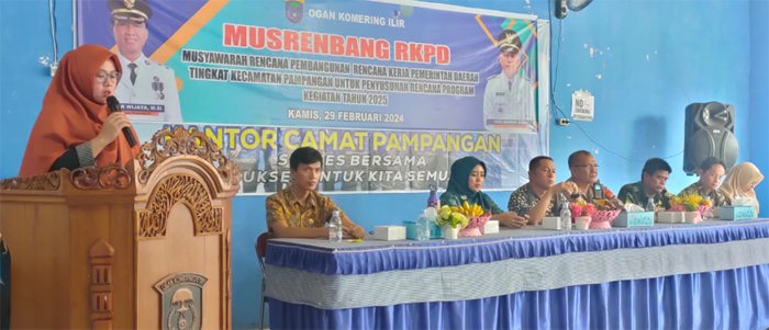 Giat musrenbang Kecamatan Pampangan untuk tahun anggaran 2025 itu, digelar di aula kantor kecamatan setempat, dihadiri oleh Tripika, para kades, PKK, kepsek, dan lainnya, dipimpin langsung Camat Pampangan Yudi Irawan S.Sos, Kamis (29/2/2024).