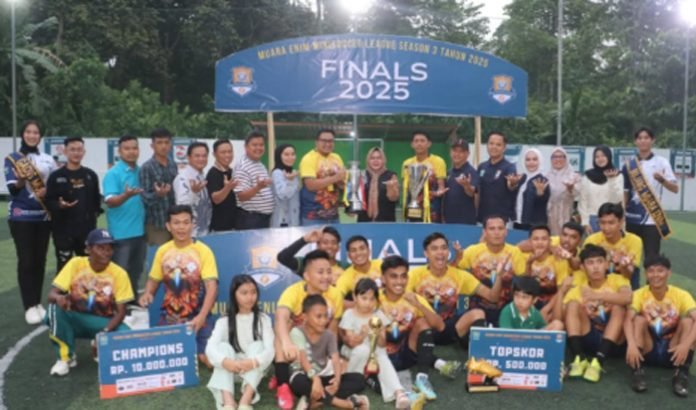 MUARA ENIM, BERITAANDA – Wakil Bupati Muara Enim Ir. Hj. Sumarni M.Si mengapresiasi gelaran Muara Enim Minisoccer League Season 3 Tahun 2025 yang sukses diselenggarakan oleh Rafferta Creative. Ajang ini dinilai menjadi wadah positif untuk mengasah kemampuan serta menjaring bibit atlet potensial di Kabupaten Muara Enim.
