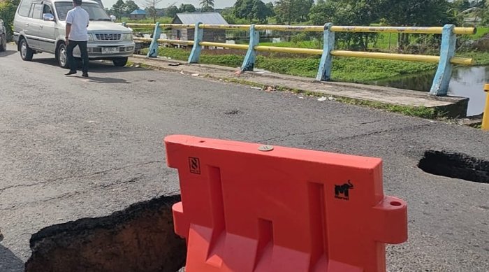 Adi mengungkapkan, hampir 2 pekan ini dua sisi badan jalan di jembatan tersebut terdapat lubang yang diperkirakan lebarnya kurang lebih 2 meter.