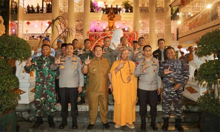 BANDAR LAMPUNG, BERITAANDA – Mewakili Komandan Korem 043/Gatam Brigjen TNI Ruslan Effendy SIP, Kasi Intel Kasrem 043/Gatam Kolonel Inf. Roy Hansen J Sinaga S.sos mengunjungi Vihara Thay Hian Bio dan Vihara Amurwa Bhumi Graha, Sabtu (21/1/2023) malam.