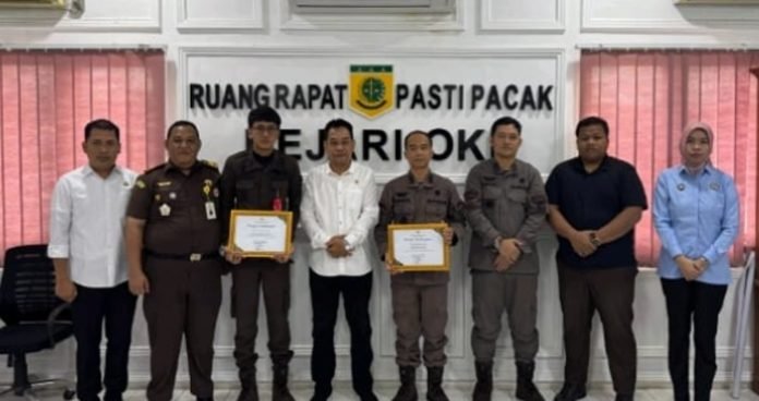 OGAN KOMERING ILIR, BERITAANDA – Kejaksaan Negeri (Kejari) Ogan Komering Ilir (OKI) menerima penghargaan bergengsi dari Kementerian Agraria dan Tata Ruang/Badan Pertanahan Nasional (ATR/BPN) dalam bentuk pin emas dan piagam penghargaan, Kamis (6/2/2025).
