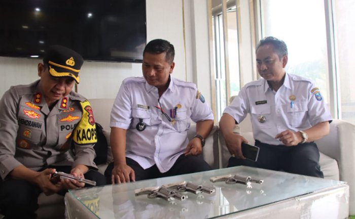 “Saya beserta Pak Camat dan Pak Kapolsek ingin menyerahkan 4 pucuk senpira dari masyarakat,” ungkap Amroni saat ditanya maksud kedatangan mereka oleh AKBP Hendrawan.