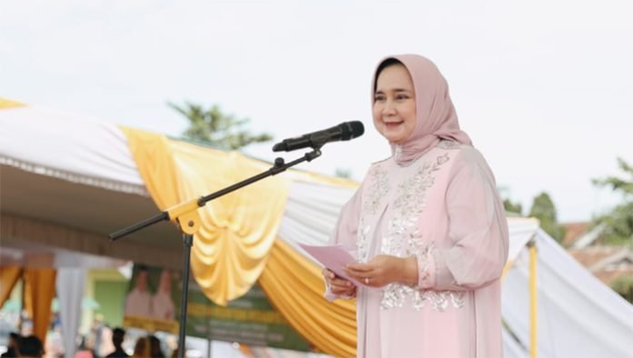 Pada pengajian itu, Riana memberikan sejumlah bantuan salah satunya santunan kepada anak yatim piatu.