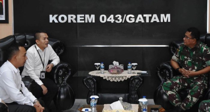 “Kunjungan kami ke Korem 043/Gatam dengan dengan tujuan untuk bersilaturahmi sekaligus memperkenalkan diri kami kepada Bapak Danrem beserta staf. Selain itu kami juga ingin lebih mengenal Korem 043/Gatam lebih jauh,“ jelasnya. (Katharina)
