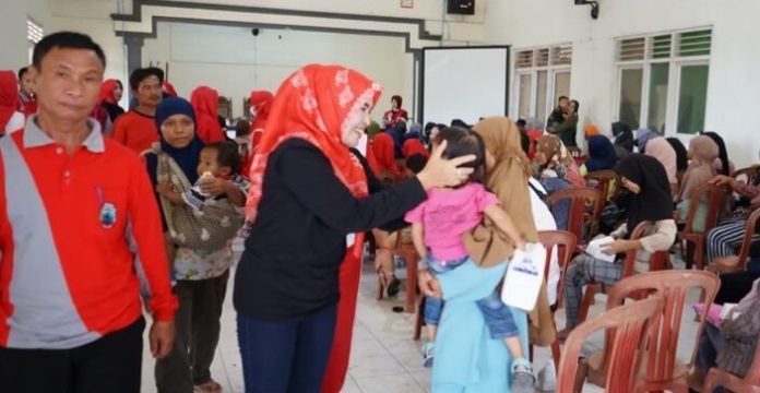 Bersama para pejabat yang hadir, Winarni menyerahkan bantuan telur secara simbolis kepada ibu hamil, keluarga stunting dan lansia.