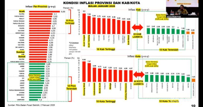 BANDAR LAMPUNG, BERITAANDA – Pemerintah Provinsi Lampung menunjukkan kinerja positif dalam menjaga stabilitas harga dan mengendalikan inflasi. Pada Januari 2026, inflasi Lampung tercatat sebesar 1,9 persen, terendah di wilayah Sumatera dan masuk dalam 10 provinsi dengan inflasi terendah secara nasional.