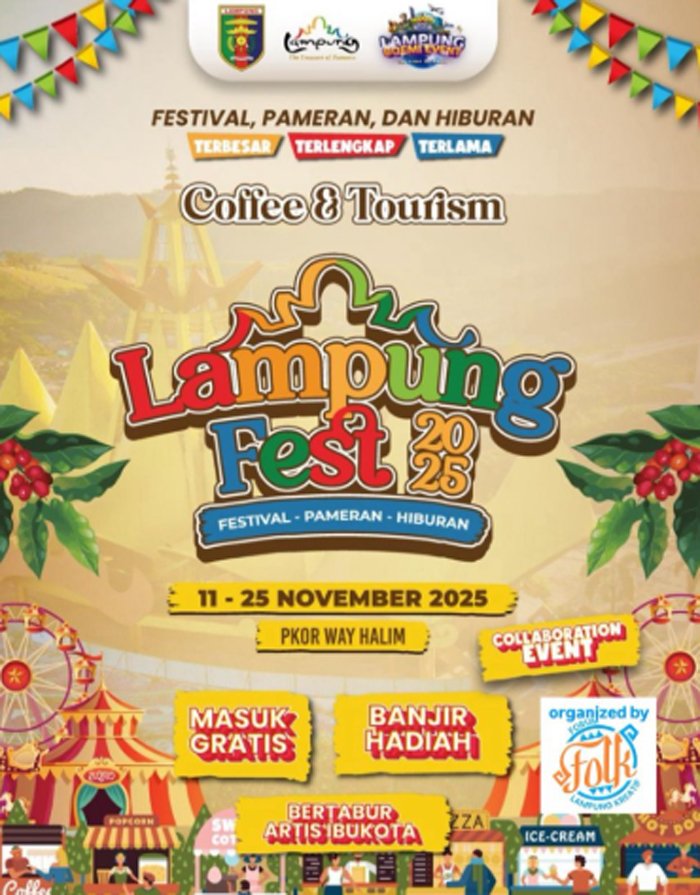 BANDAR LAMPUNG, BERITAANDA – Lampung Fest 2025 siap digelar pada 11–25 November 2025 di PKOR Way Halim, Bandar Lampung. Hadir dengan format baru, festival ini akan menjadi panggung kolaborasi masyarakat, komunitas kreatif, dan dunia usaha dalam mendorong pariwisata Lampung.