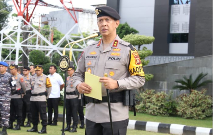 PALEMBANG, BERITAANDA – Kapolda Sumsel Irjen Pol A. Rachmad Wibowo SIK memimpin apel pergeseran personel PAM TPS dan BKO Sat Brimob Polda Sumsel ke Polres jajaran Polda Sumsel, bertempat di halaman depan Gedung Presisi Mapolda Sumsel, Ahad (11/2/2024).