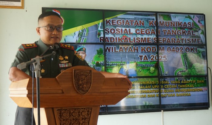 OGAN KOMERING ILIR, BERITAANDA – Komando Distrik Militer (Kodim) 0402/OKI-OI menggelar kegiatan komunikasi sosial (komsos) bersama komponen masyarakat dengan tema ‘Cegah Tangkal Radikalisme/Separatisme’, bertempat di Aula Darmawangsa Kodim 0402/OKI-OI, Rabu (10/12/2025).