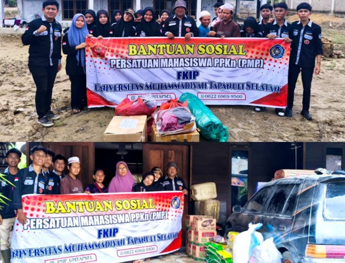 TAPANULI SELATAN, BERITAANDA – Sejumlah mahasiswa yang tergabung dalam Pengurus Persatuan Mahasiswa PPKn (PMP) Fakultas Keguruan dan Ilmu Pendidikan (FKIP) Universitas Muhammadiyah Tapanuli Selatan (UM Tapsel) bersama para dosen, turun langsung membantu warga korban banjir dan tanah longsor di Kabupaten Tapanuli Selatan.