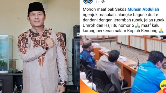 “Mohon maaf Pak Sekda Muhsin Abdullah, ngenjuk masukan, alangke baguse duit e dandani jerambah rusak, jalan rusak. Umroh dan haji itu nomor 5, maaf kalu kurang berkenan,” tulisnya.