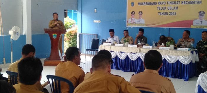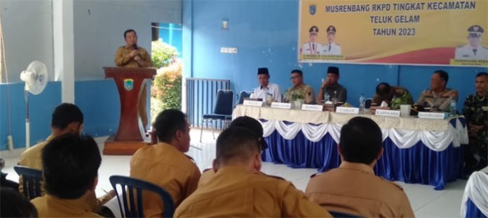 OKI, BERITAANDA – Setelah musrenbangdes, kini giliran musrenbang tingkat kecamatan pun dilaksanakan. Seperti terlihat di aula rapat kantor Kecamatan Teluk Gelam Kabupaten Ogan Komering Ilir (OKI), Senin (9/1/2023).