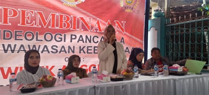 BANDAR LAMPUNG, BERITAANDA – Ketua Pengurus Daerah (Pengda) Tenaga Pembangunan (TP) Sriwijaya Provinsi Lampung, Hj. Nurhasanah SH MH, menjadi narasumber dalam kegiatan sosialisasi Pembinaan Ideologi dan Wawasan Kebangsaan (PIP-WK) yang digelar di Kelurahan Kampung Baru, Kecamatan Labuhan Ratu, Bandar Lampung, Ahad (29/6/2025).