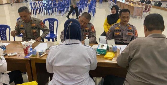 BANDAR LAMPUNG, BERITAANDA – Mendekati pemungutan suara Pemilu 2024, Tim Bidang Kesehatan (Biddokkes) Polda Lampung melakukan pemeriksaan kesehatan menyeluruh terhadap personel yang akan terlibat dalam pengamanan tempat pemungutan suara (TPS) di wilayah Lampung.